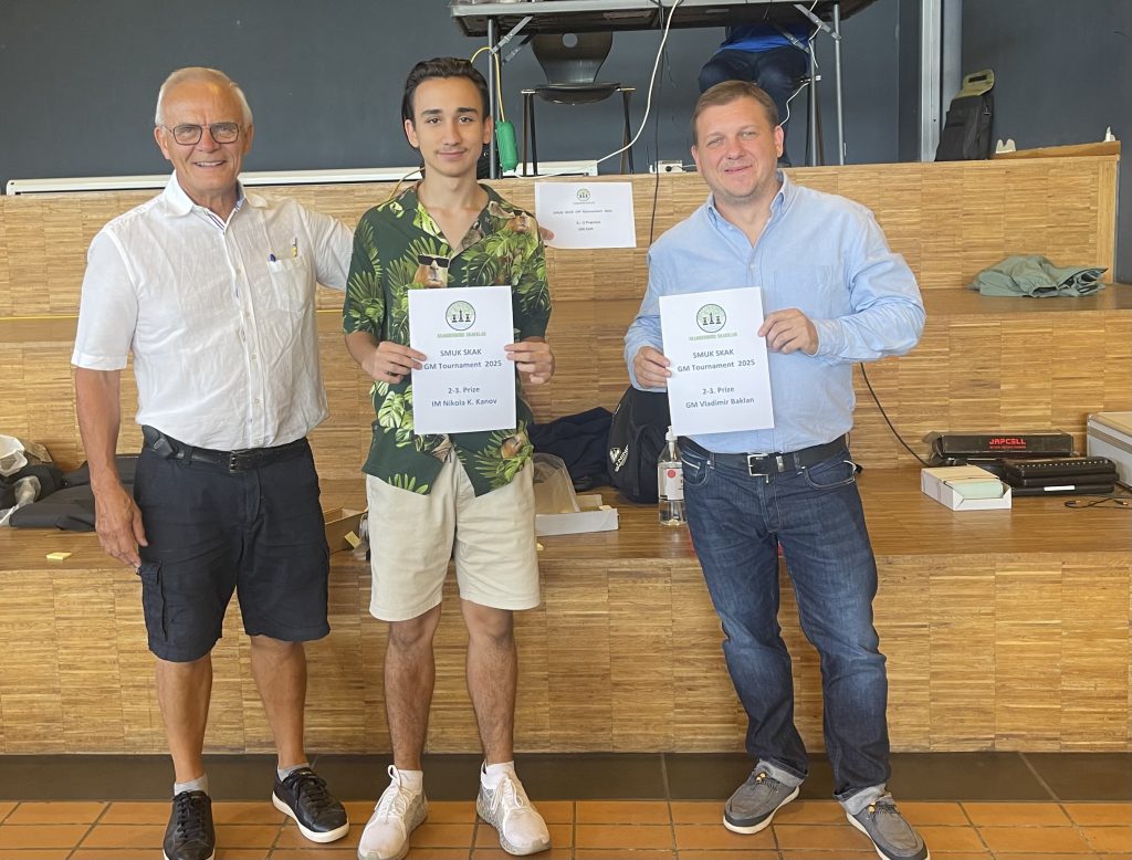 GM Vladimir Baklan og IM Nikola Krasimirov Kanov deler andenpladsen et halvt point efter vinderen. Begge vandt i sidste runde. Baklan slog IM Filip Boe Olsen efter danskeren tidligt gik galt i byen med 14. -, Sxc3, og Kanov vandt over IM Nicolai Kistrup i 33 træk.