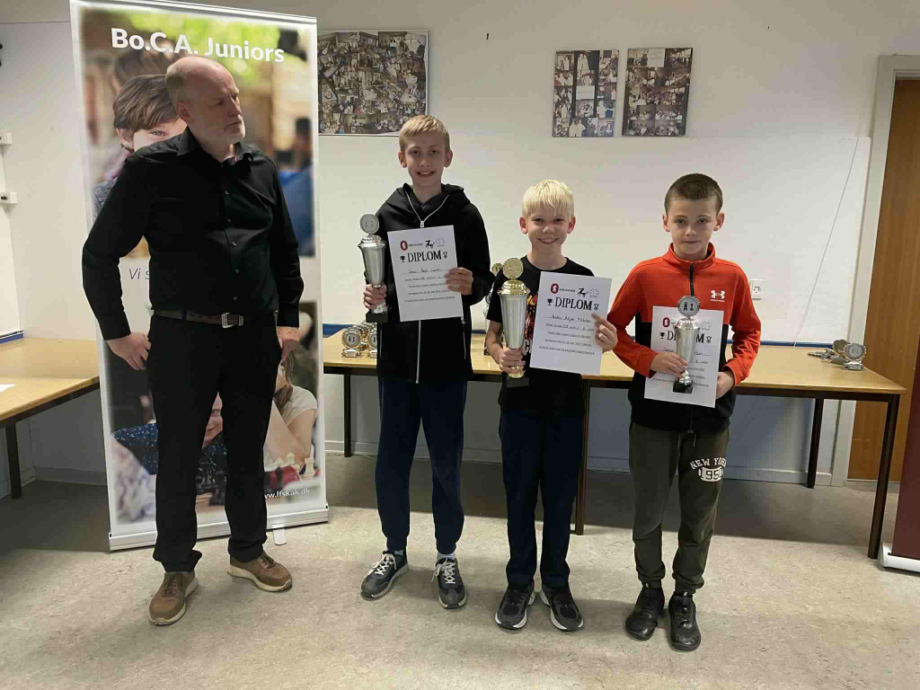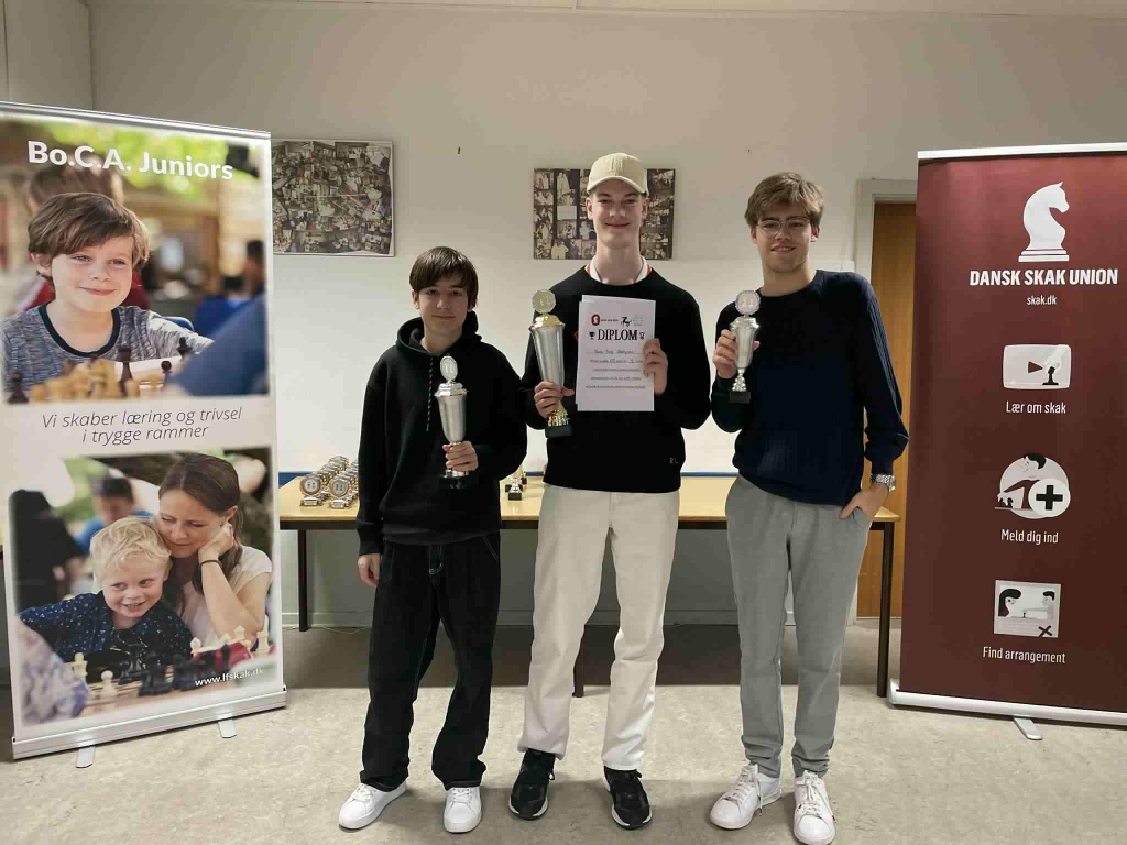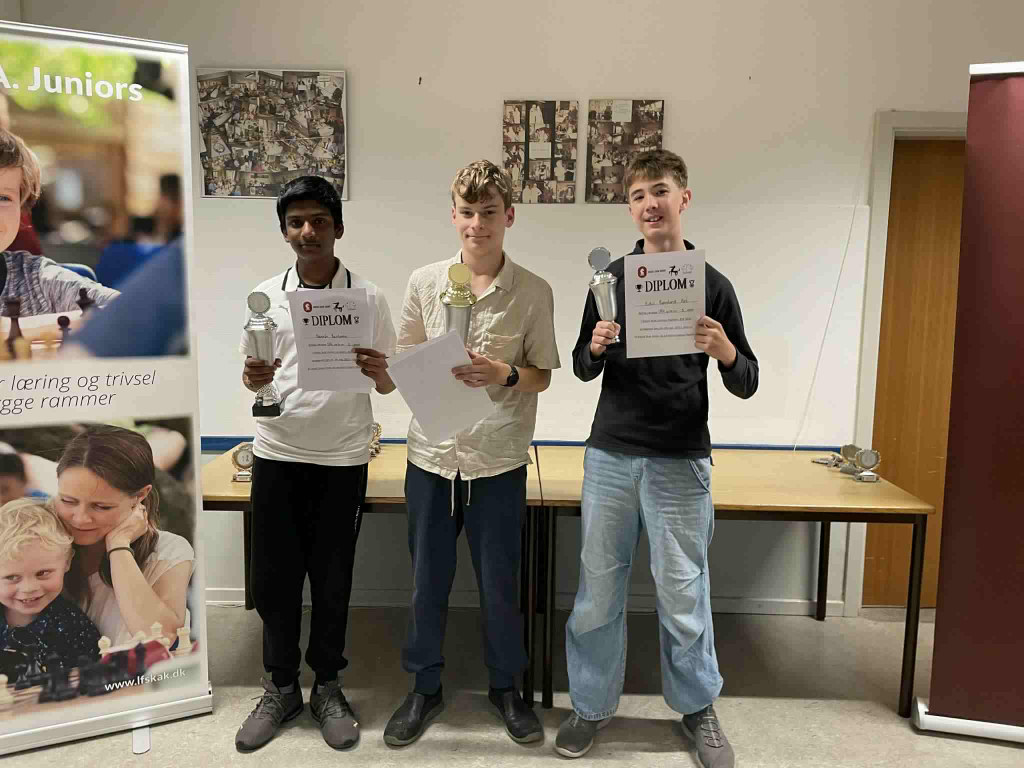 Noah Krug Wahlgreen, Lukas Iskos og William Pihl sluttede alle på 4 point. De havde spillet de indbyrdes partier remis og vundet de tre andre partier. Dette betød podiet skulle afgøres på korrektion. Det var tæt, og de kom i mål i førnævnte rækkefølge.
