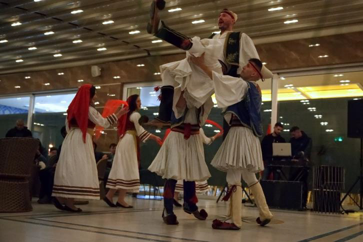 Efter aftensmaden var der Albansk dans på terrassen foran poolen og mulighed for efterfølgende selv at danse med.