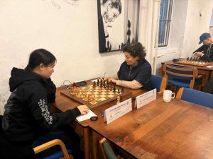 WFM Ellen Kakulidis og WFM Sandra de Blecourt Dalsberg har lagt sig i spidsen med 2 af 2 i Kvinde DM 2025, der spilles denne weekend i ØBROs lokaler på Rosenvængets Allé 31 på Østerbro. Netop de to mødes indbyrdes i 3. runde lørdag kl. 17.00 med Ellen Kakulidis bag de hvide brikker. Kun et halvt point efter de to førende spillere ligger feltets yngste spiller Anna Sofie Li fra Køge.